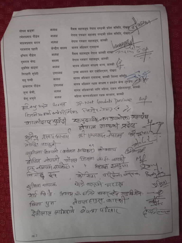यसै सन्दर्भमा, आजै विभिन्न सामाजिक सङ्घसंस्थाका प्रतिनिधिहरू र द्वन्द्व प्रभावित परिवारले कास्कीका प्रमुख जिल्ला अधिकारी रूद्रादेवी शर्मामार्फत प्रधानमन्त्रीलाई ज्ञापनपत्र बुझाएका छन् ।