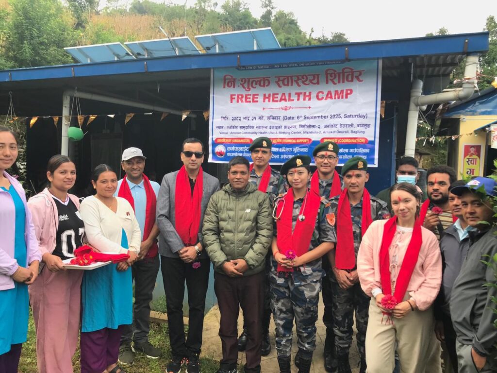 पोखरा । कर्मफ्लाइट्स फाउण्डेशन नेपाल, पोखरा र नेपाल एपीएफ मुक्तिनाथ फिल्ड अस्पताल पोखरा (सशस्त्र प्रहरी बल, नेपाल) को संयुक्त आयोजनामा तथा निसीखोला गाउँपालिकाको स्वीकृति र समन्वयमा बागलुङ जिल्लाको निसीखोला गाउँपालिका वडा नं २, अर्नाकोटमा एक दिने निःशुल्क स्वास्थ्य शिविर २०८२ भदौ २१ गते सञ्चालन भएको छ ।