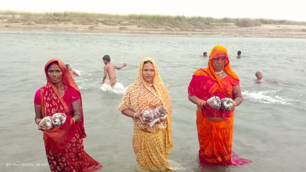 अस्ताउँदो सूर्यलाई दिइयो अर्घ (फोटो फिचर)
