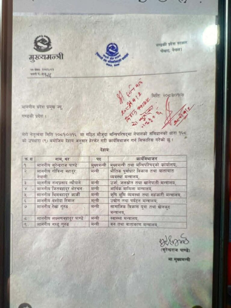 नम्डु गुरुङ वन तथा वातावरण, रेखा गुरुङ सामाजिक विकास, युवा तथा खेलकुद मन्त्रीको जिम्मेवारीमा नियुक्त हुनुभएको छ ।
