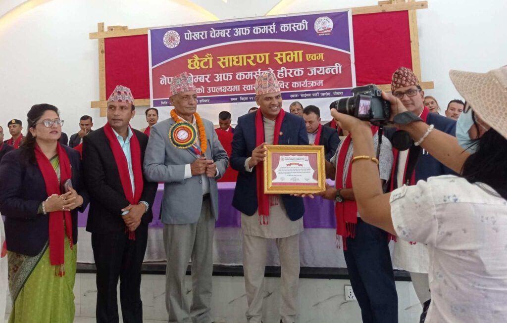 पोखरा । पोखरा चेम्बर अफ कमर्श कास्कीको छैठौँ साधारणसभा तथा नेपाल चेम्बर अफ कमर्शको हीरक जयन्ती वर्ष मनाउने क्रममा  २०८२ साउन १७ गते पोखरामा कार्यक्रम सम्पन्न भएको  छ ।
