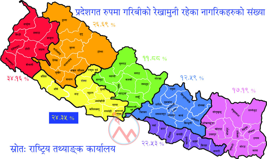 राष्ट्रिय तथ्याङ्क कार्यालयका अनुसार हाल नेपालमा २०.२७% जनसङ्ख्या (करिब ६० लाख) गरिबीको रेखामुनि छ ।