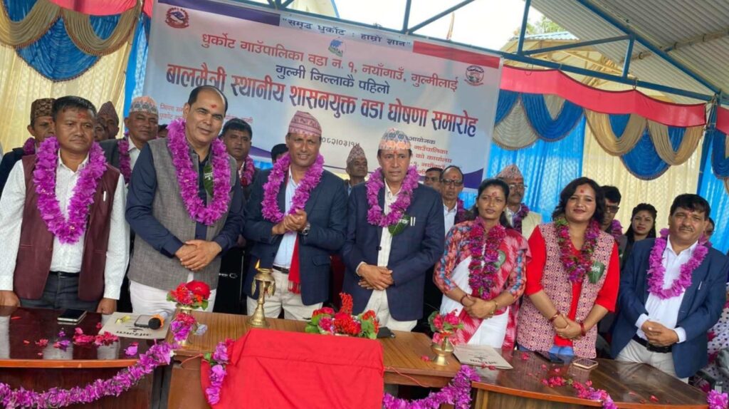 गुल्मी । सबै प्रक्रिया सूचक र चरण पूरा गरेर धुर्कोट गाउँपालिका वडा १ नयाँगाउँ जिल्लामै पहिलो बालमैत्री शासनयुक्त वडा घोषणा भएको गाउँपालिका अध्यक्ष भुपाल पोखरेलले जनचासोलाई जानकारी दिनु भयो ।