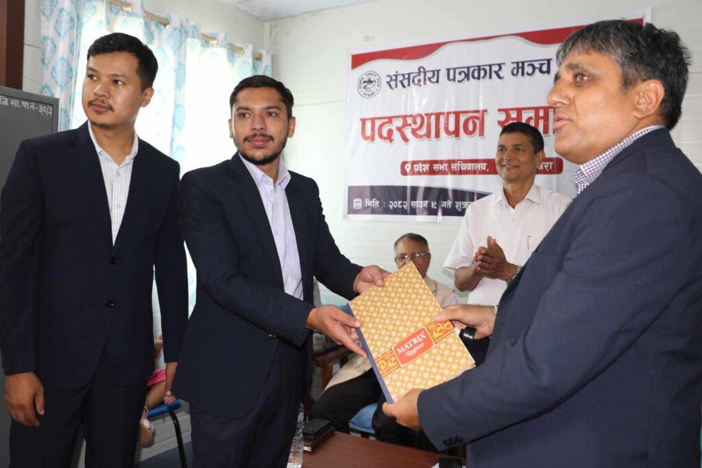 पोखरा । गण्डकी प्रदेश सभामा आयोजित एक आौपचारिक कार्यक्रमका बीच संसदीय पत्रकार मञ्च गण्डकीको चथो अधिवेशनबाट निर्वाचित कार्यसमितिको सपथ ग्रहण तथा पदस्थापन कार्यक्रम संसदीय पत्रकार मञ्चको कार्यालयमै सम्पन्न भएको छ।