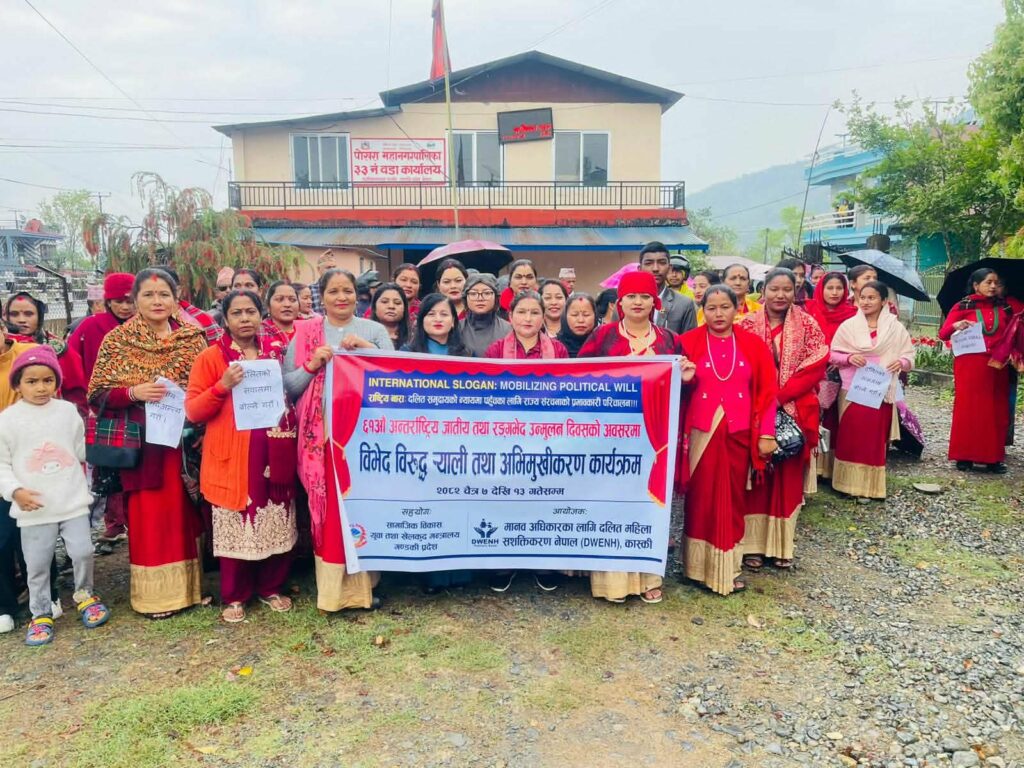 “Mobilizing Political Will” भन्ने अन्तर्राष्ट्रिय नारा तथा “दलित समुदायको न्यायमा पहुँचका लागि राज्य संरचनाको प्रभावकारी परिचालन” भन्ने राष्ट्रिय नाराका साथ मानवअधिकारका लागि दलित महिला सशक्तीकरण नेपाल, कास्कीको आयोजना तथा सामाजिक विकास, युवा तथा खेलकुद मन्त्रालय (प्रदेश) र पोखरा महानगरपालिका-३३ को समन्वयमा कार्यक्रम आयोजना गरिएको हो ।