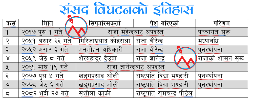 संसद छँदाछँदै संसद बाहिरबाट पूर्व प्रधानन्यायाधीश कार्कीलाई प्रधानमन्त्री बनाइएको छ । जुन कुरा संविधानभन्दा बाहिरबाट वा भनौँ संविधानको कुनै धारा नसमातिकन बनाइएको छ । लेख्नलाई त राष्ट्रपति कार्यालयले धारा उल्लेख त गरेको छ । तर संसद जिउँदो छँदाछँदै संसद बाहिरको व्यक्तिलाई प्रधानमन्त्री बनाइएको वास्तविकता घाम जत्तिकै छर्लङ्गै छ ।