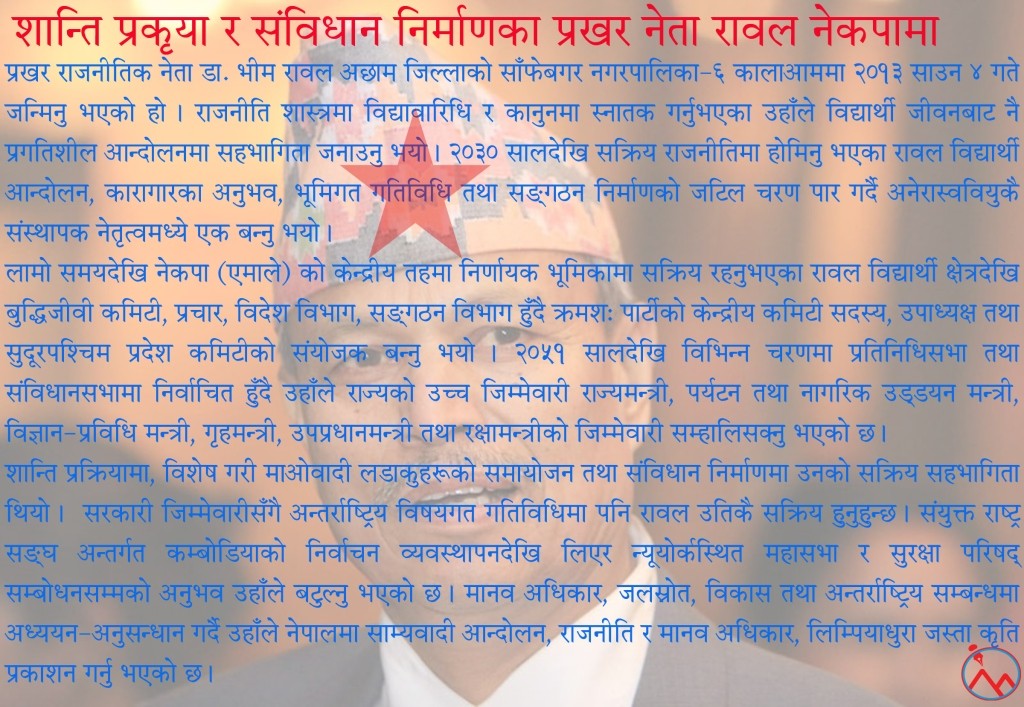 शान्ति प्रक्रिया र संविधान निर्माणमा सक्रिय रावल नेपाली कम्युनिष्ट पार्टीमा
