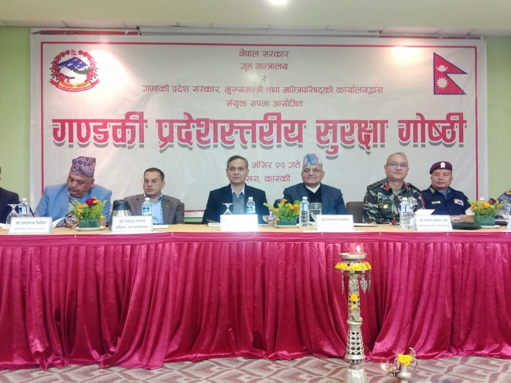 यसैबीच, नेपाल सरकार गृह मन्त्रालय तथा गण्डकी प्रदेश सरकारको आयोजनामा गण्डकी प्रदेशको राजधानी पोखरामा प्रदेशस्तरीय एकदिने सुरक्षा गोष्ठी सञ्चालन भइरहेको छ ।