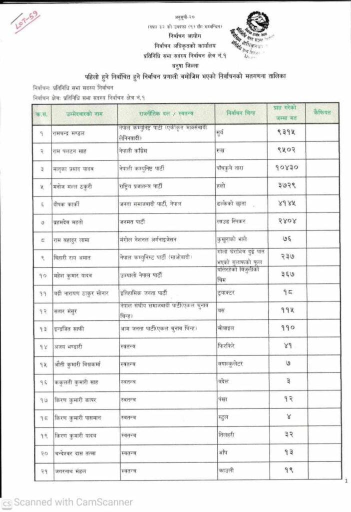 धनुषा-१ को उम्मेदवारी खारेजबारे कारण देखाऊ आदेश जारी