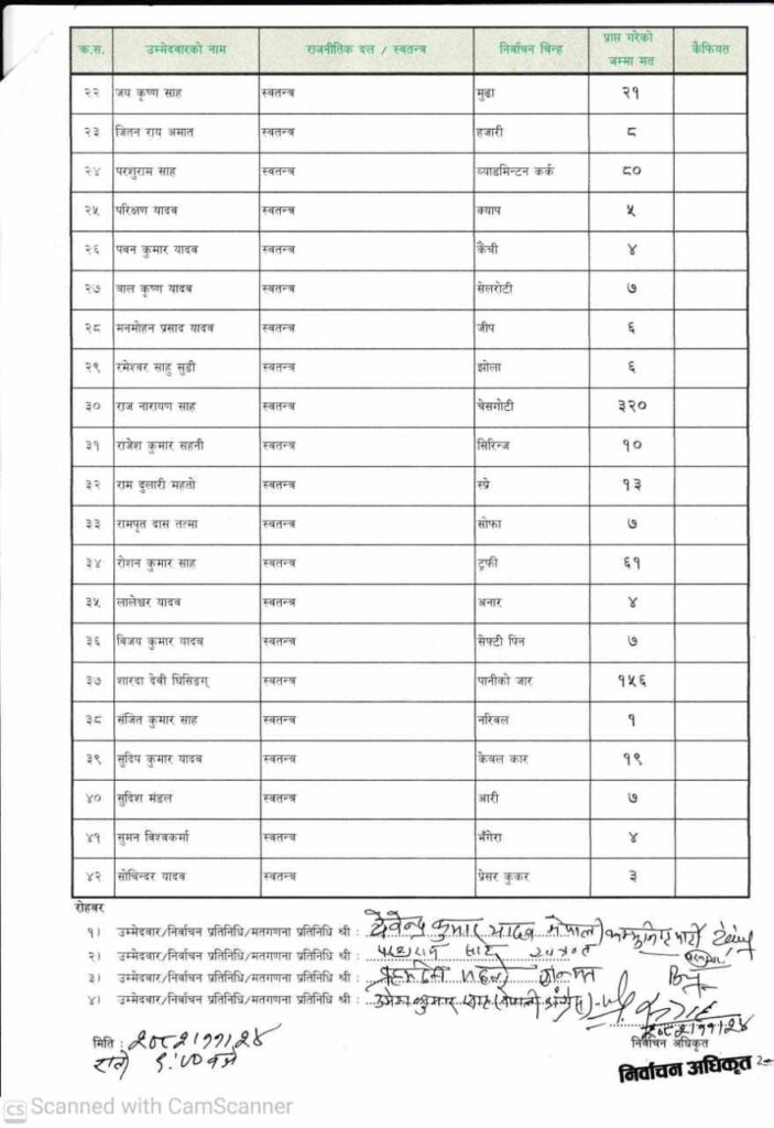 उक्त मतलाई बदर मान्दा नेकपाका उम्मेदवार एवम् पूर्व मन्त्री मातृका यादव निर्वाचित हुनु भएको छ । यद्यपी यससम्बन्धमा विवाद भने जारी रहेको छ ।