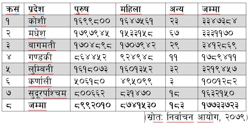 २०७९ वैशाख २९ गतेसम्म १८ वर्ष उमेर पुरा भएका मतदाता