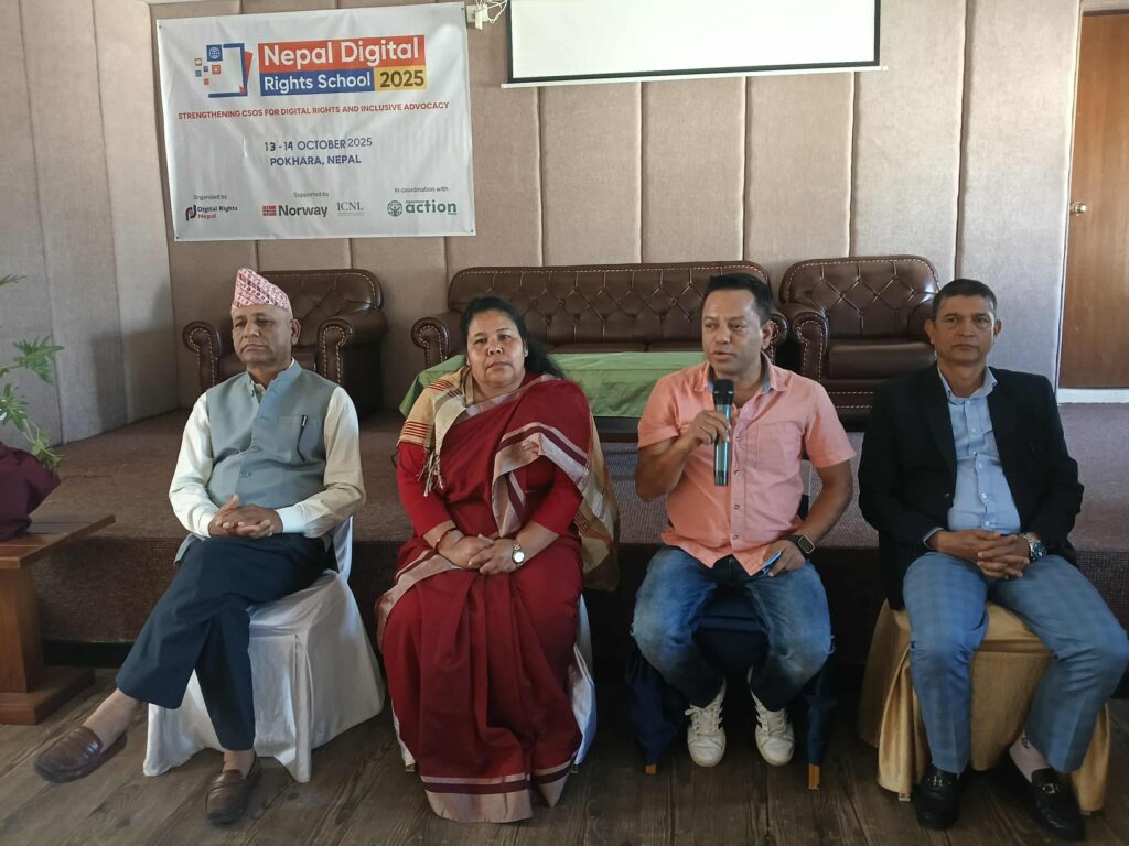 पोखरा । डिजिटल राइट्स नेपालको आयोजनामा नागरिक समाज र सरोकारवाला संस्थाहरूको क्षमता अभिवृद्धि गर्ने उद्देश्यले ‘नेपाल डिजिटल राइट्स स्कुल–२०२५’ अन्तर्गत दुई दिने कार्यशाला गोष्ठी २०८२ असोज २७ गते पोखरामा सुरु भएको छ ।