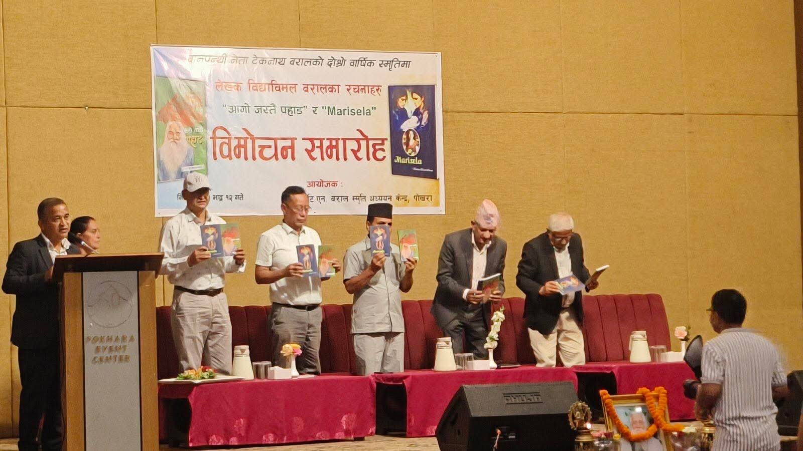 टि.एन. बराल स्मृति अध्ययन केन्द्र पोखराले वामपन्थी नेता तथा वरिष्ठ अधिकारकर्मी टेकनाथ बरालको दोश्रो वार्षिक स्मृतिमा लेखक एवं स्रष्टा विद्याविमल बरालका साहित्यीक सिर्जनाहरु “आगो जस्तै पहाड (संस्मरण) र “मरिसेला” विमोचन कार्यक्रम २०८२ भदौ १२ गते पोखरामा आयोजना गरियो ।