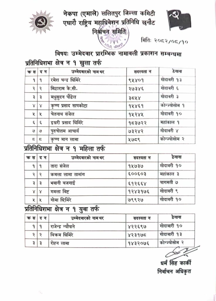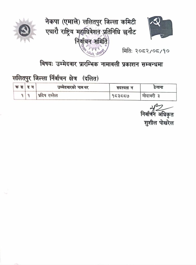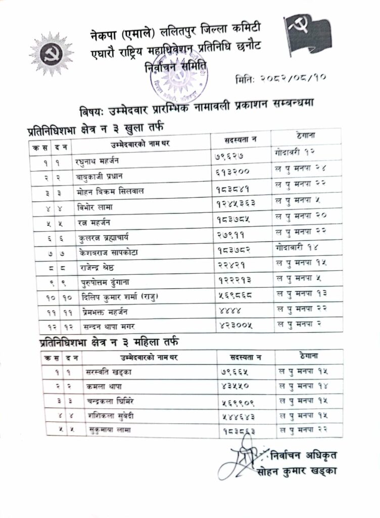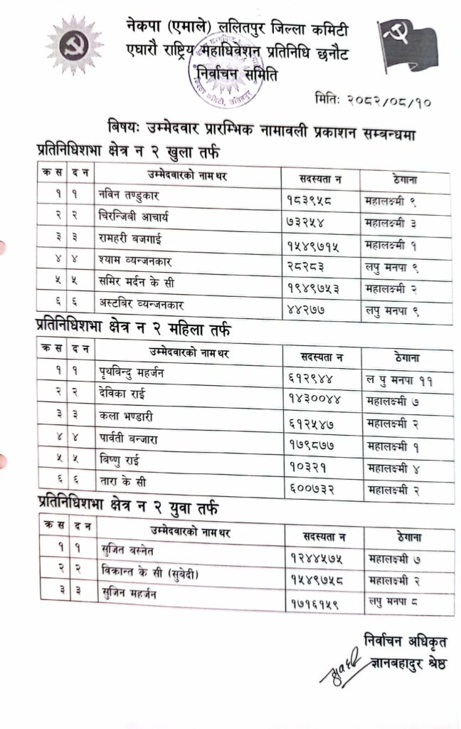 एमाले महाधिवेशन प्रतिनिधिको लागि ललितपुरमा उम्मेदवारको लर्को (यी हुन् उम्मेदवारहरु)