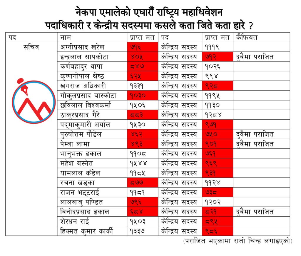 पदाधिकारीमा पराजित भए पनि केन्द्रीय सदस्यमा निर्वाचित भए कमिटीमा अट्ने प्रावधान भए तापनि यी ११ जना नेता दुवै पदमा असफल भएका हुन् ।